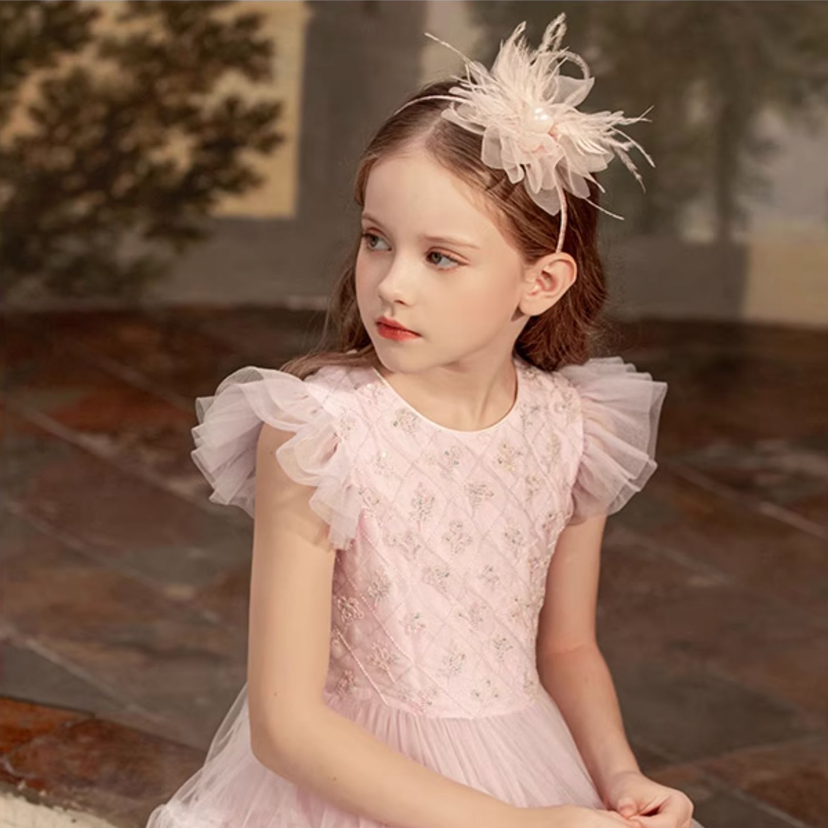 欧米の新型子供の頭飾りのお姫様のカチューシャの羽のカチューシャの女の子の超仙の頭の花のネットの赤いショーのショー