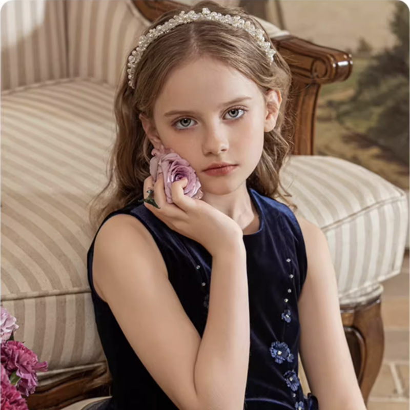 欧米の女の子のハイエンドの髪飾りの子供のドレスは花の子供の双列の真珠の頭飾りのファッションのシンプルな超仙の髪バンドを飾ります。