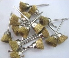 赤い黒い銅線の碗にブラシをかけて銅線のブラシをかけます。