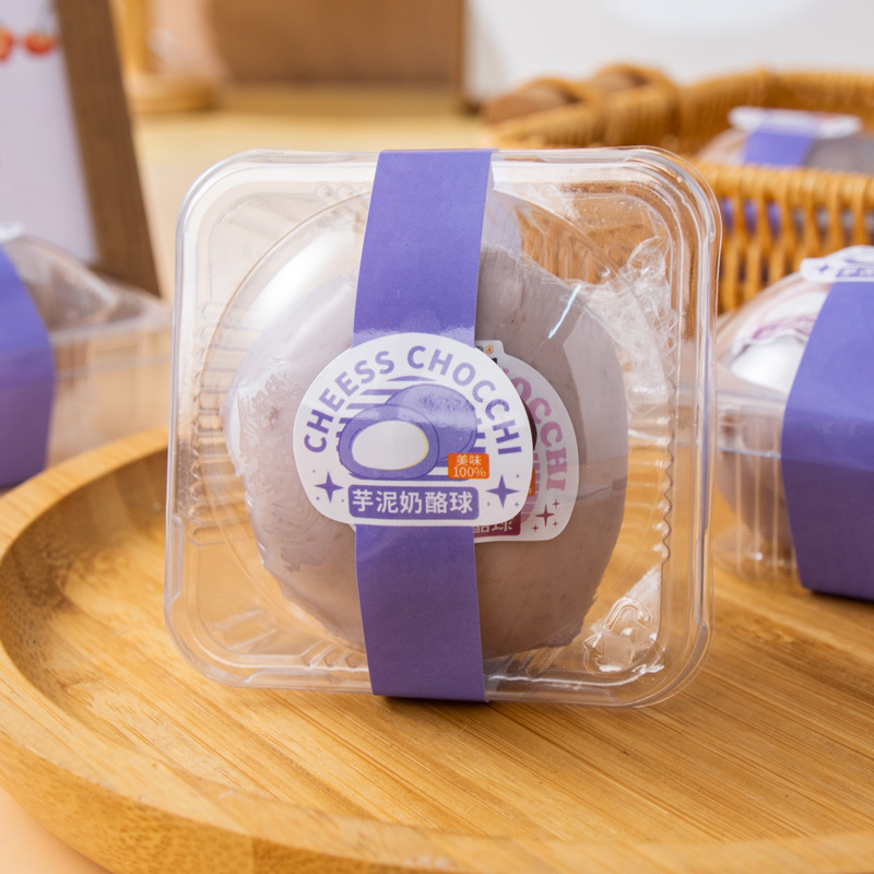 サトイモのチーズのボールの包装箱の単一の透明な雪の媚娘は箱を包んで卵黄のショートニングの青い団の西の箱を焼きます。