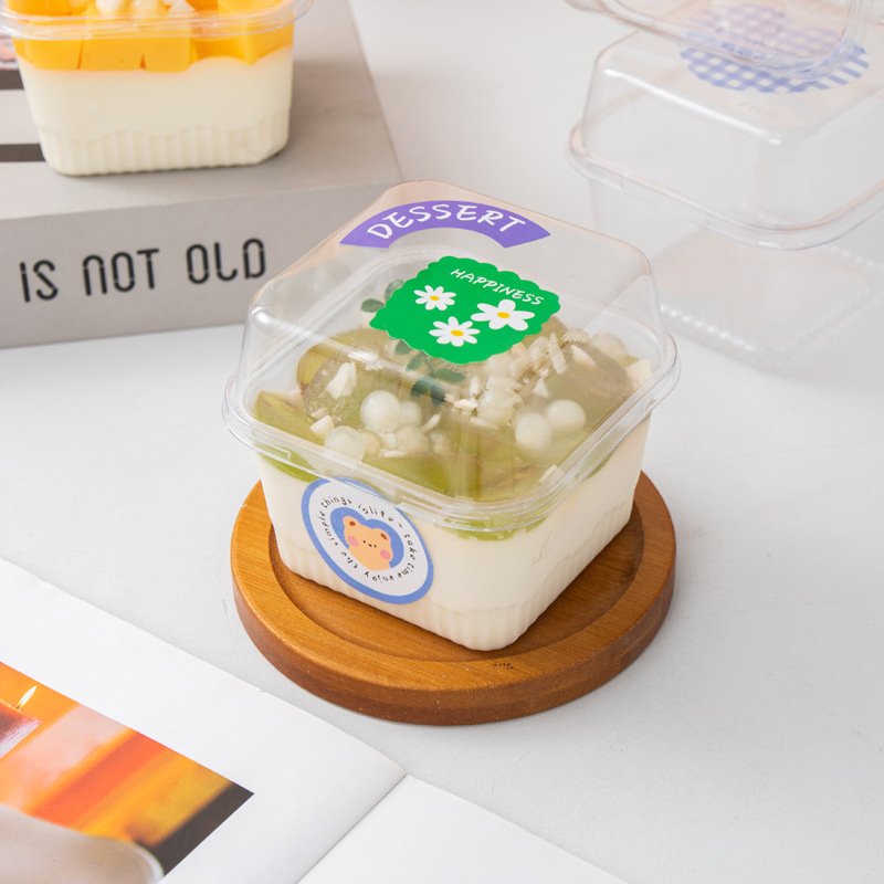 四角い乳果ケーキ箱アイスクリーム透明包装箱豆乳ムース千層クリームフルーツプリン包装箱