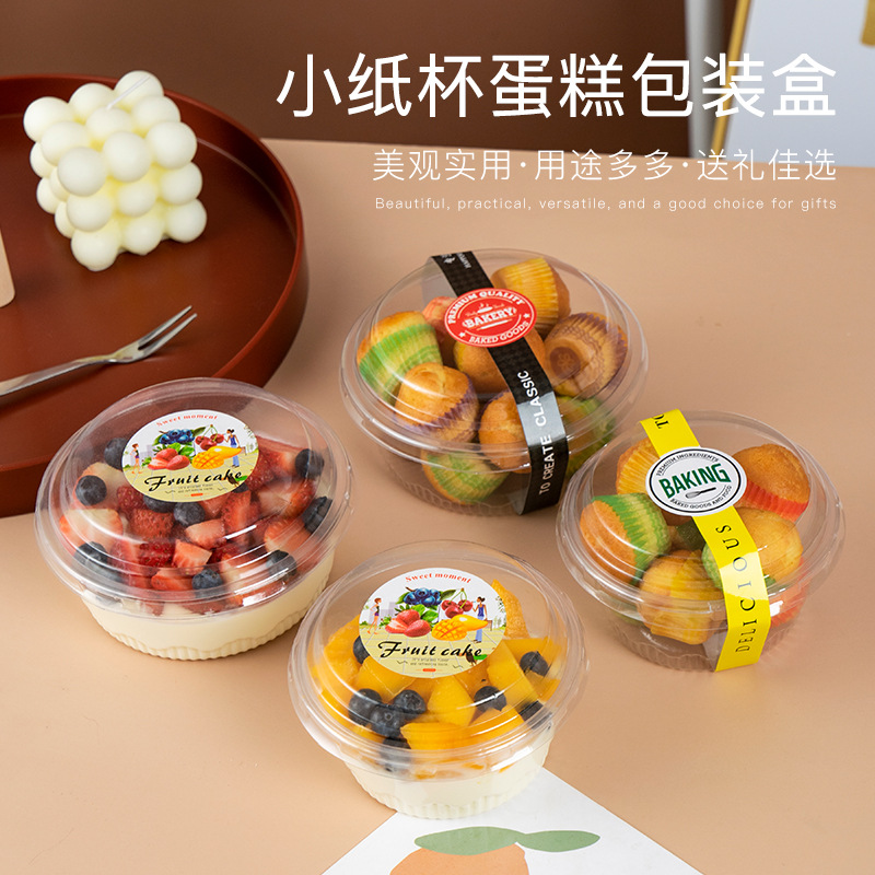 小さな紙コップのケーキの包装箱の使い捨て透明クリームの果物のケーキの箱のチーズのムースの双皮の乳のプラスチックの箱