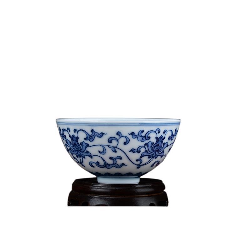 手作りカップ青と白の磁器ティーカップシングルカップ優しい景徳鎮セラミックマスターカップ小さな茶碗工場直販