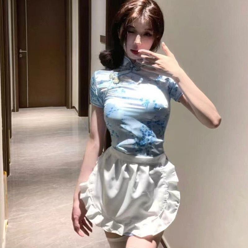 中華娘のチャイナドレスのセクシーな下着のエプロンの純粋な欲望のメイド服の2つのセットのメイドの日系の復古スカートのスカートの夏