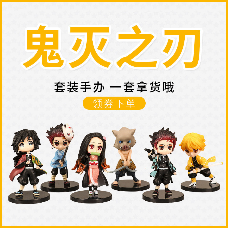 6種類の鬼滅の刃の手はアニメの祟りの豆の炭の治郎の模型のおもちゃをします。