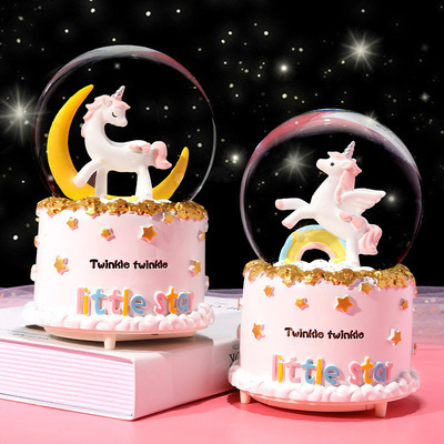 創造的な夢の少女心虹月ユニコーン水晶球音楽雪花子供かわいい誕生日プレゼント