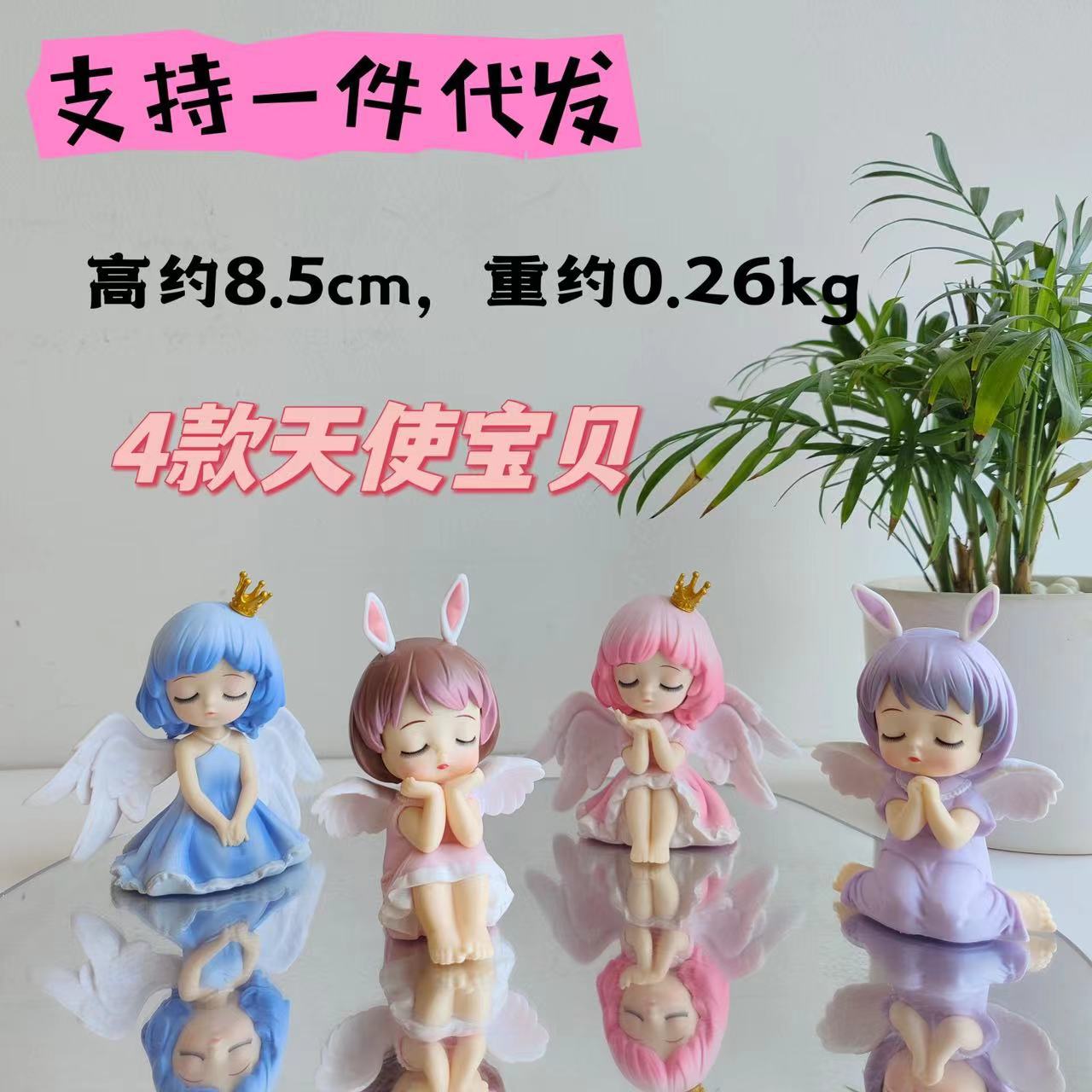 4種類の天使の赤ちゃんの女の子のおもちゃの置物のかわいい贈り物の家の置物の装飾の雰囲気感は生放送します。