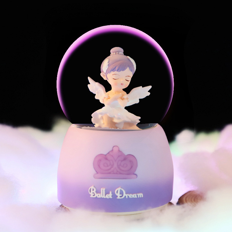 お姫様水晶球オルゴール発光自動雪回転女の子誕生日プレゼント樹脂置物