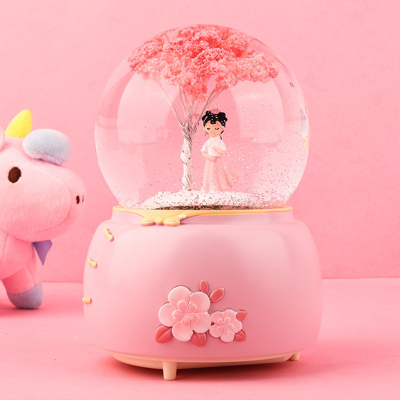 古風漢服女の子水晶球オルゴール回転発光少女心誕生日恋人プレゼント樹脂置物