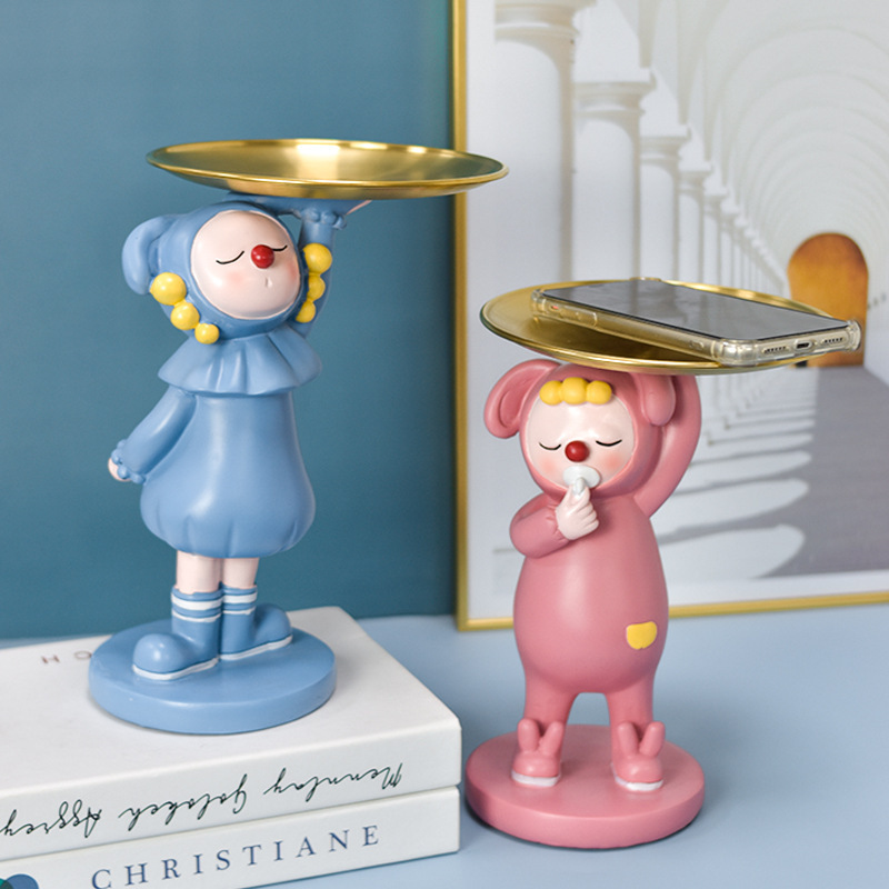 玄関のアイデアがかわいい夢遊病人形の鍵トレイのデスクトップにリビングルームの家庭装飾品を飾ってプレゼントを収納する