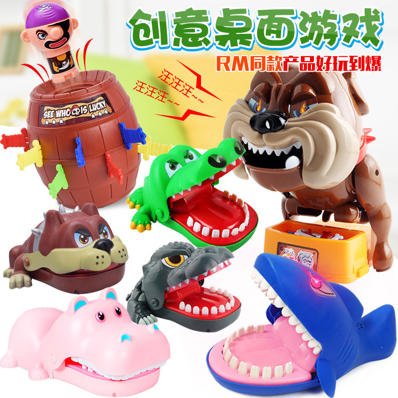 クロスボーダー減圧ワニは指のおもちゃを噛んでいます。