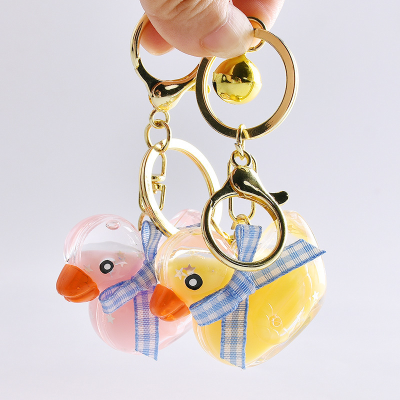 かわいいマフラーの格子のリボンの口のアヒルの鍵は液体の流砂を掛けて現物の卸売りのアイデアのペンダントを浮かべます。