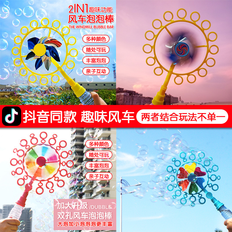 4637ディザトーンアップグレードの泡風車七彩双穴泡棒泡吹器手動多泡風車メーカー