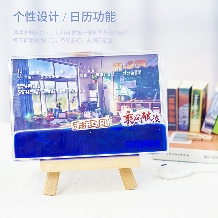 米の包みは風に乗って波に流されて砂の液体のフォトフレームの創意の家庭の学生の励ましの志に乗ってカウントダウンして卓上カレンダーの置物を飾ります。