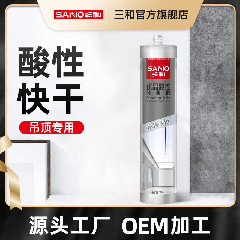 三和ガラスゴム酸性シリコーン防水防かびゴム透明白色ガラスキャビネット接着天井専用シール剤
