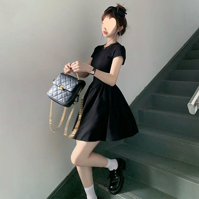 女性のためのハイエンドのヘップバーンスタイルの黒のドレス夏 2025 新しいデザインのウエスト痩身と年齢を減らすショートスカート
