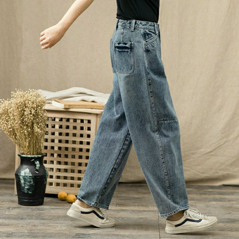 2025 春と秋の新ジーンズ女性スタイル大きいサイズルーズストレートハイウエストワイドレッグお父さんキャロットパンツズボン