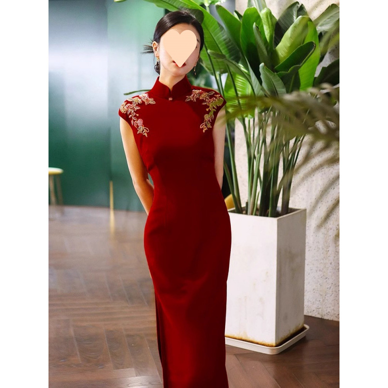 チャイナドレス乾杯ドレス2025新作ブライダルバーガンディチャイニーズエンゲージメントドレススカートハイエンドドレッシングガウンは通常時に着用できます