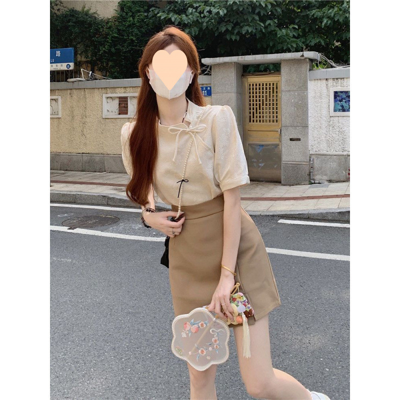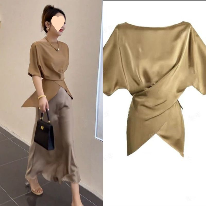 ハイエンドの気質、ハイエンドのライトラグジュアリーファッションスーツ、女性の夏の新しい非対称トップスとスリムスカートの2点セット