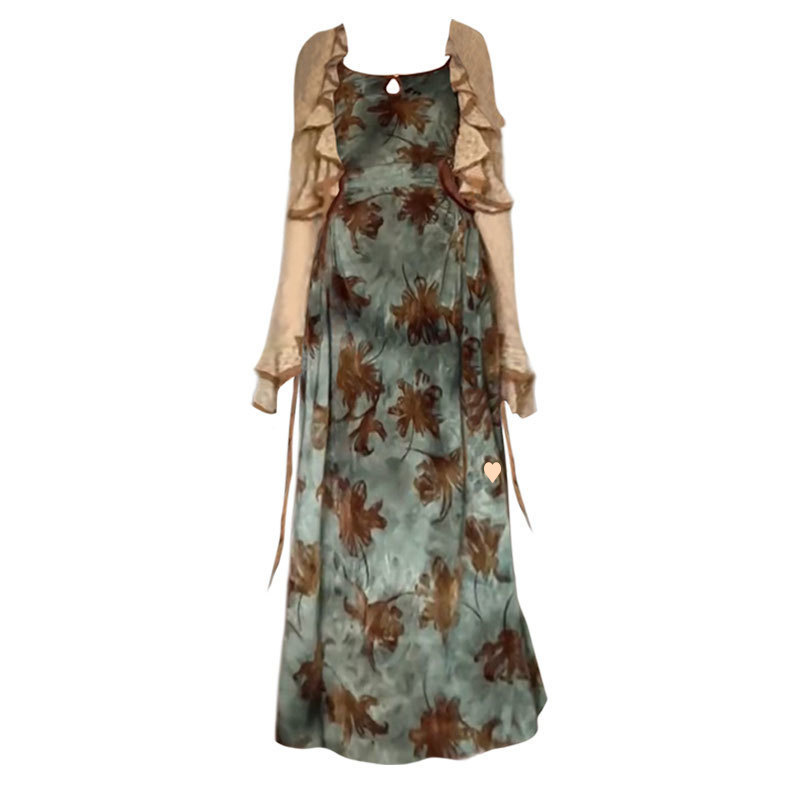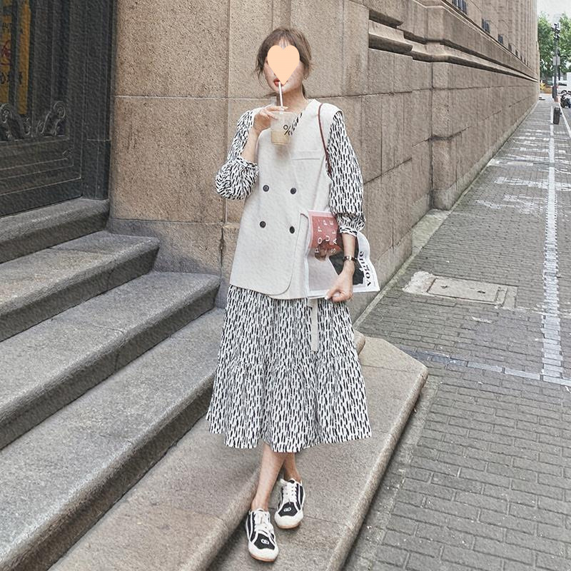 フレンチフローラルドレスレディース2025春新作カジュアル長袖デザイン小香風ベストロングスカート2点セット