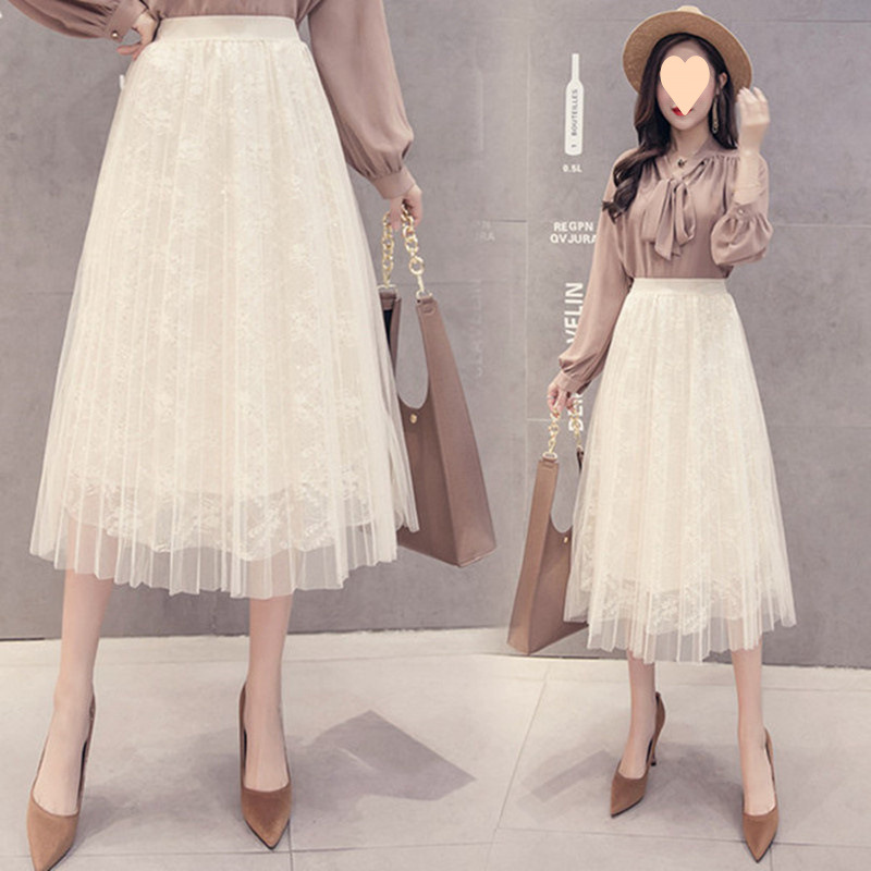 レースメッシュスカート、ミドル丈秋冬スカート、プリーツスカート、ハイウエストスリムスカート、フェアリースカート、万能ロングスカート
