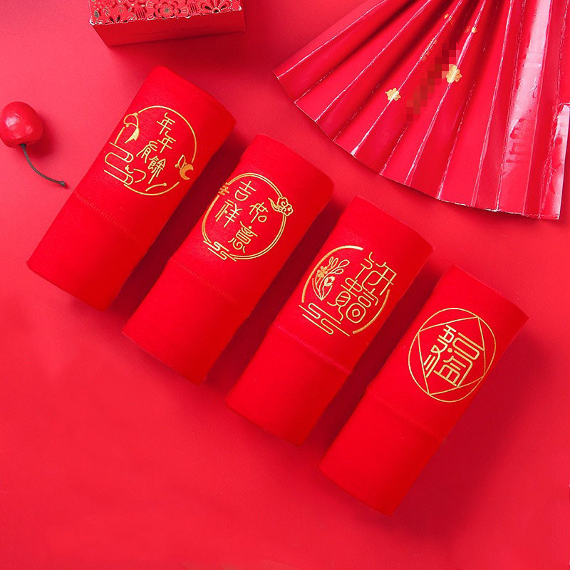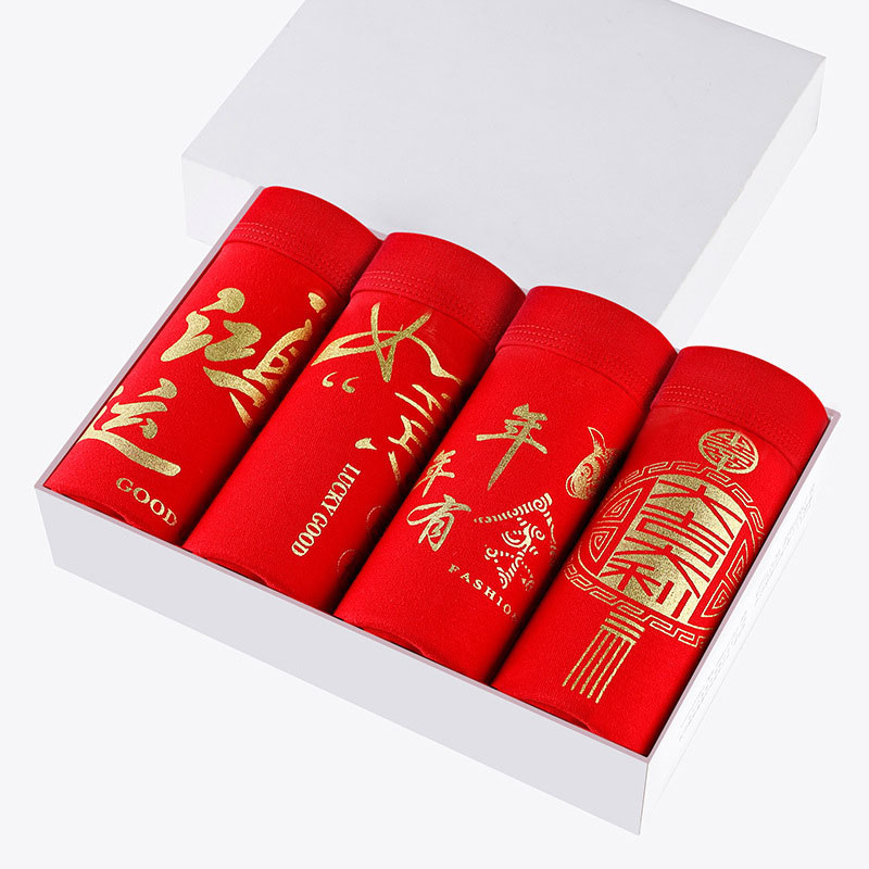 年物4枚入りの下着代発綿質男性大紅下着本命年赤プリント男性平角ズボン