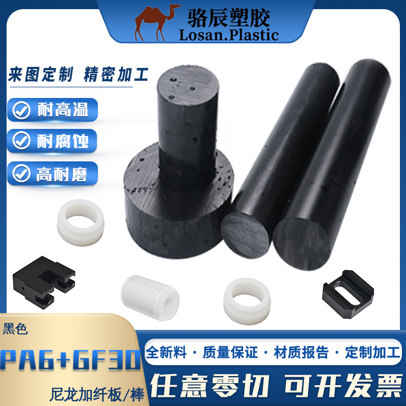 黒色ナイロン6プラスファイバースティック PA6+GF30プレート 高靱性MCナイロン 高強度ナイロン6+GF30加工