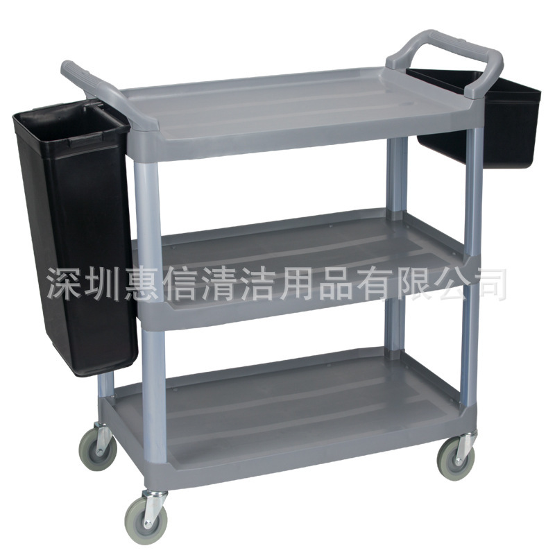 Baiyun Cleaning AF08161A 多目的三層トロリー ゴミ箱付き ホテル レストラン 配膳と回収トレイカート