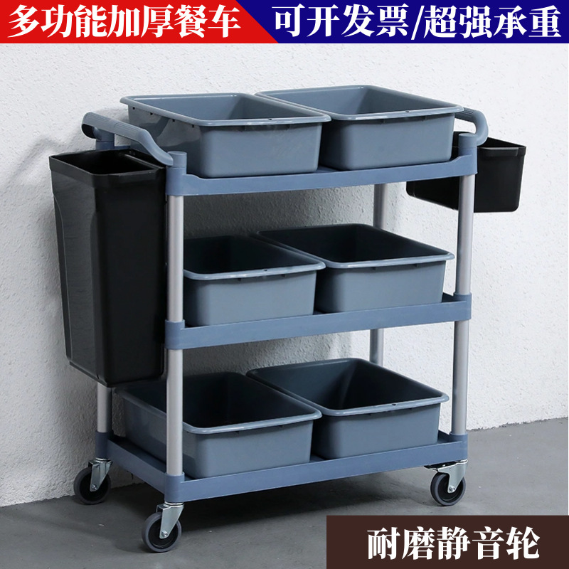 ホテルレストランボウル収集カート手押し三層食品配達カート食品配達ツールカート多目的カート厚みのある食品カート商業用