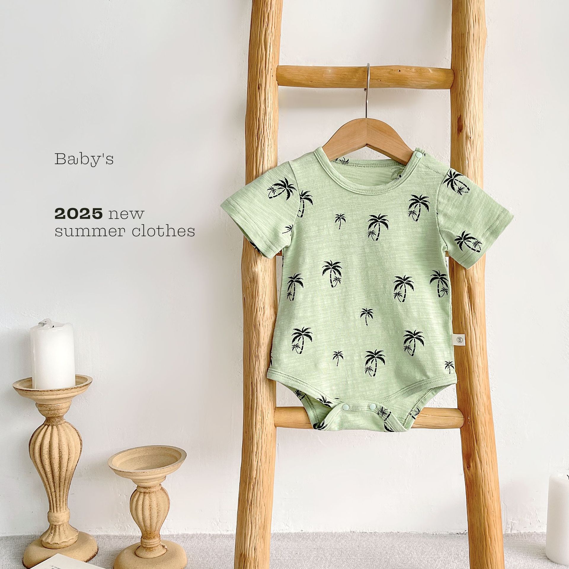 幼児と幼児 2025 通気性のある綿ジャンプスーツ北欧スタイルかわいいココナッツツリープリントホームジャンプスーツ