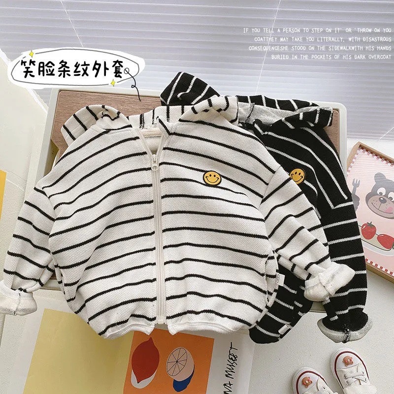 女の子の秋服のコートの新型男の子の洋気の赤ちゃんのストライプのファッションのカジュアルな帽子のカーディガンの子供のコート