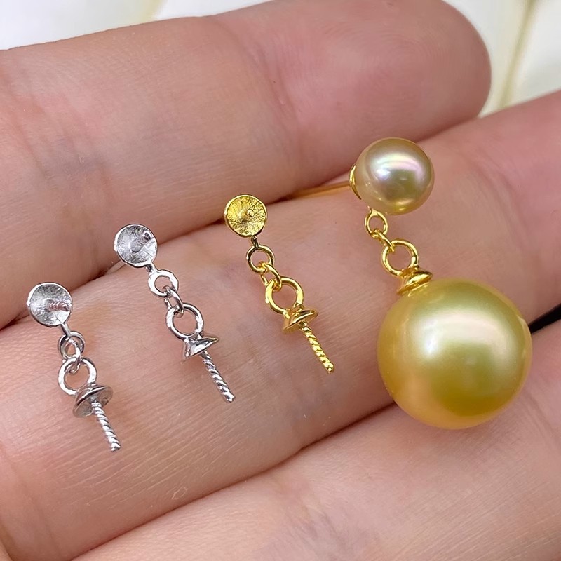 S925純銀真珠イヤリング部品diy手作り双珠金ピアスアクセサリー大小珠イヤリング空托