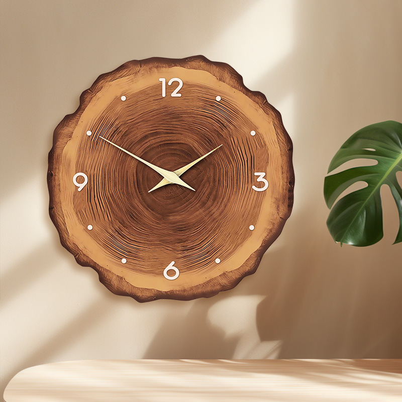 12インチシンプル年輪木製時計掛け時計リビングルーム高級感壁掛け時計静音時計代発卸