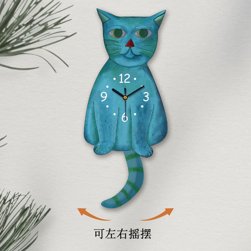 国境を越えた人気の青猫をテーマにしたスイング壁時計リビングルームハイエンド時計壁掛けホームサイレント装飾時計