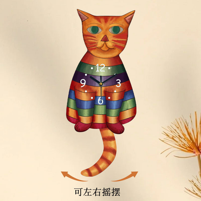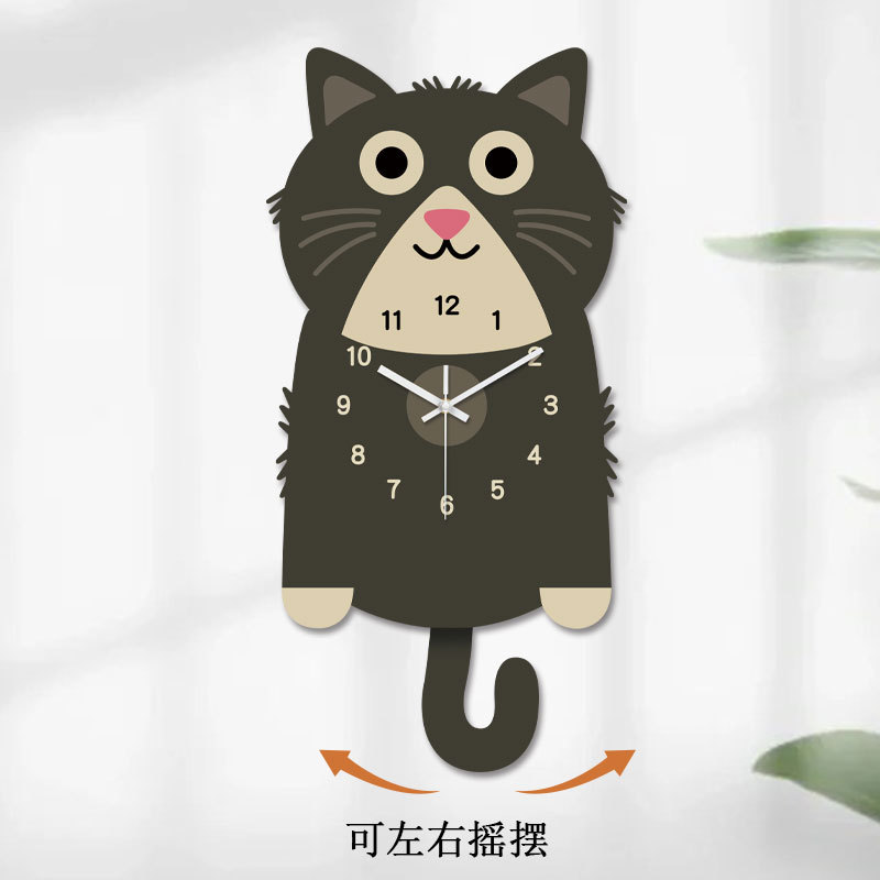 かわいい猫のスイング壁時計大型リビングルームハイエンド時計壁掛けホームサイレントパンチフリー装飾時計