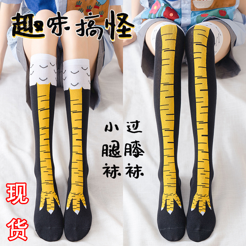 女性用クロスボーダーチキンフットソックス、面白いニーソックス、ネットセレブのダチョウ柄ふくらはぎフィットネススポーツ、面白いチキンフットロングチューブ