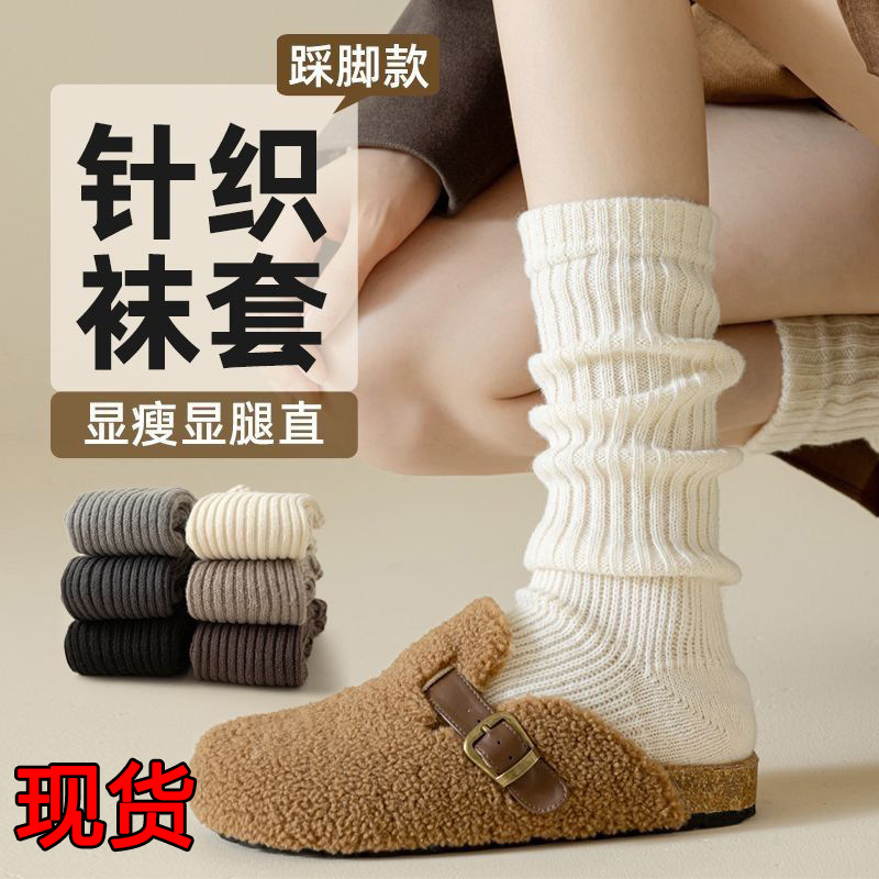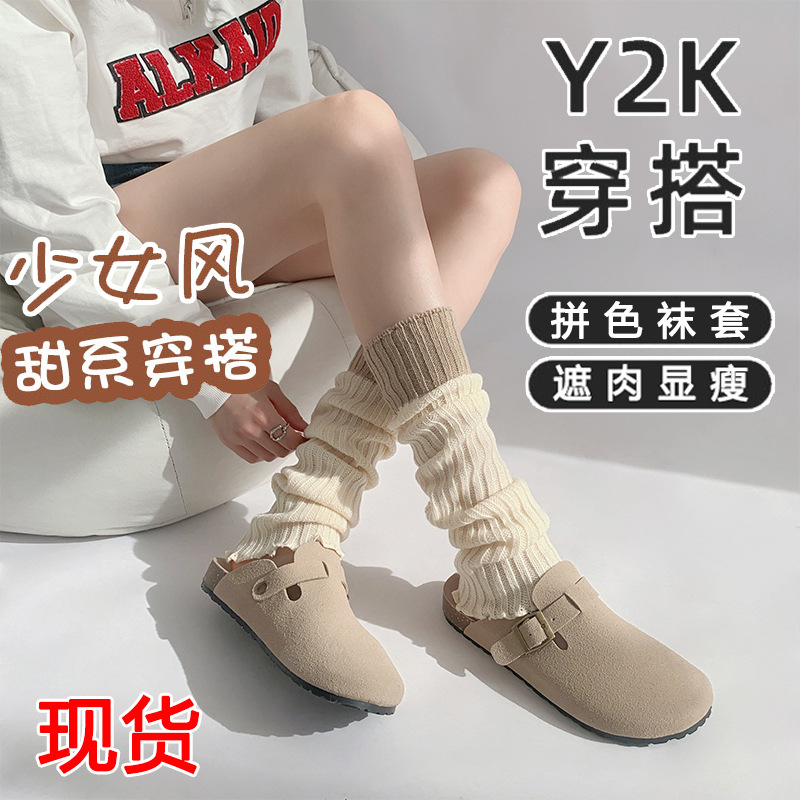 白い靴下カバー春秋タイプの灰色の積み重ね靴下秋冬ストッキングとブーツの黒いふくらはぎの靴下の色合わせの足カバーy 2k