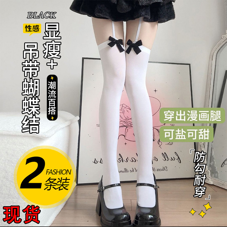 ホワイトベルベットストッキング女性の薄い抗スナッチピュアディザイアサスペンダーリボン黒シルクロングハイソックスjk日本製
