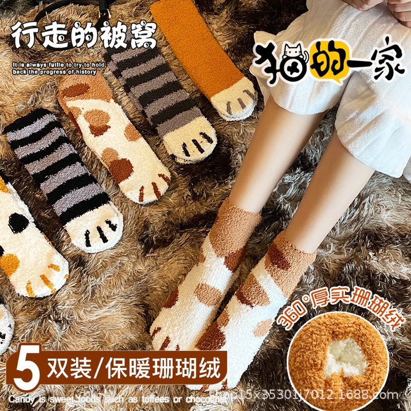 猫の爪の靴下のサンゴのベルベットの靴下の女性の床の靴下のぬいぐるみの秋冬のタオルの保温とベルベットの睡眠の家庭のじゅうたんの月子