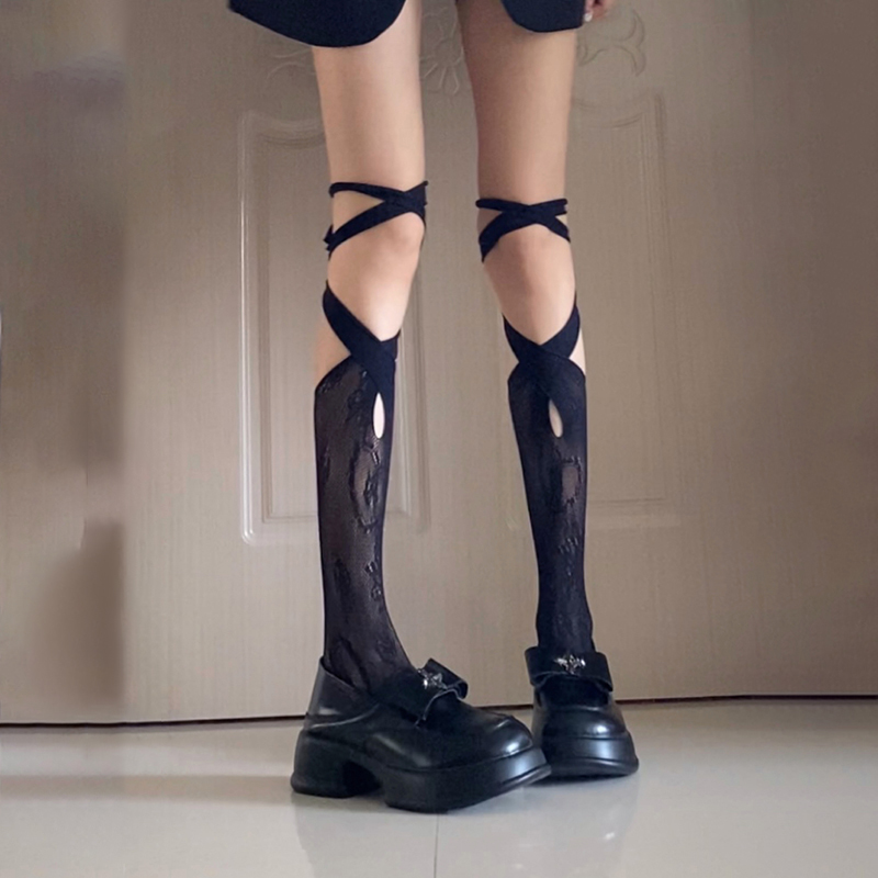クロスストラップlolita靴下女性かわいい日系jk下腿靴下甘辛いロリータ百合中筒分指靴下