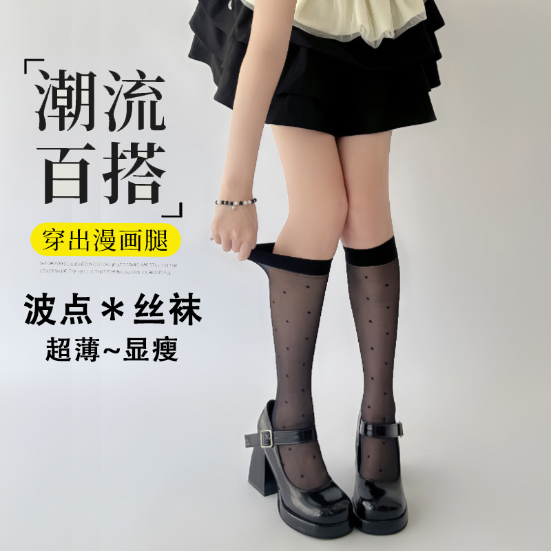 ストッキングの女性の夏の超薄透肉ストッキングJK黒い点ギャルの夏の透明な愛の足の靴下