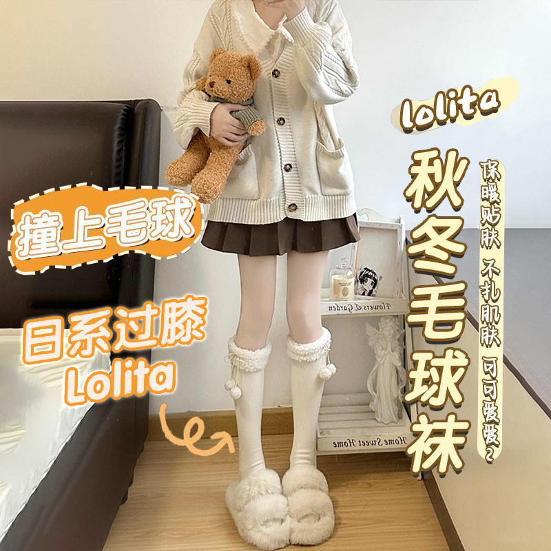 ふくらはぎの靴下の女性の秋冬のタイプは厚い保温の羊の小毛の毛の毛のボールの長い筒と膝の積み重ねの靴下の日系jkのロリータを厚くします。