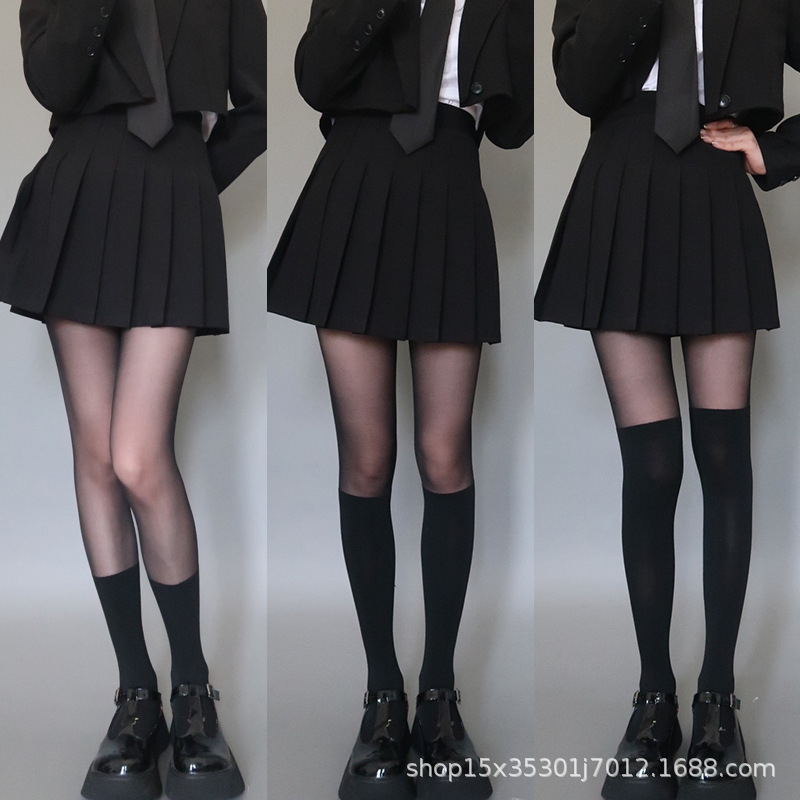 黒のストッキングの女性の薄いタイプjkの色合わせの光の足の神器の小さい足の黒い糸の偽の膝の半分はズボンの靴下を打ちます。