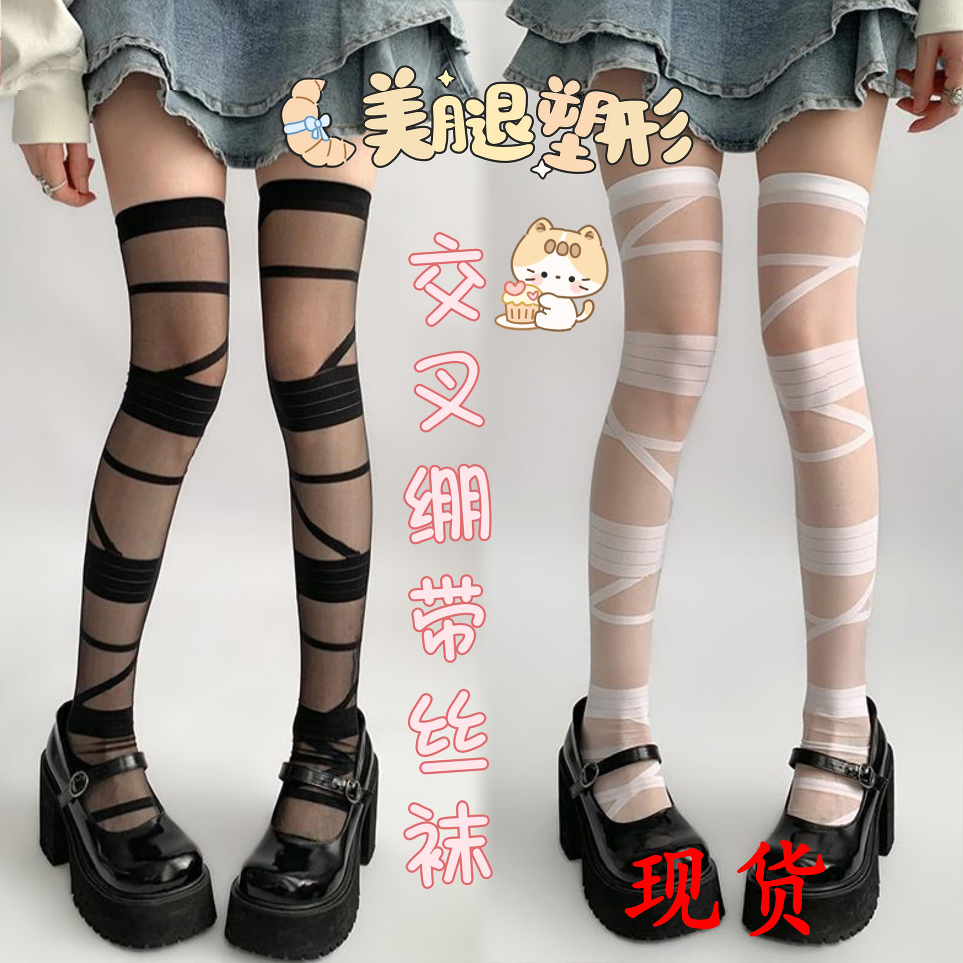ロリータLolitaソフト妹クロス包帯jk過膝靴下甘いクールギャル高颜値白糸ストッキング