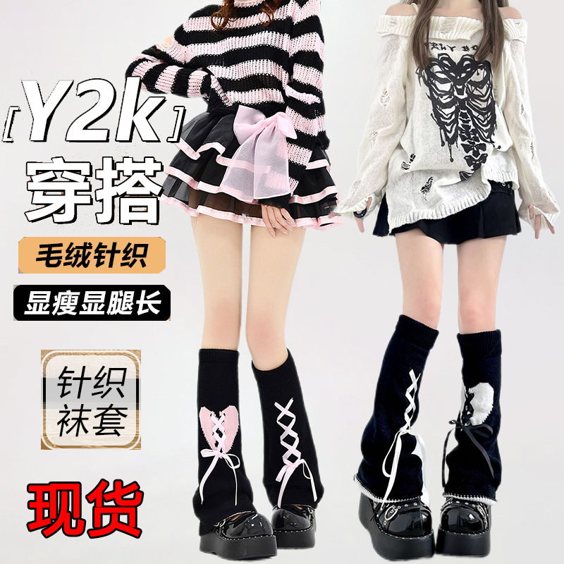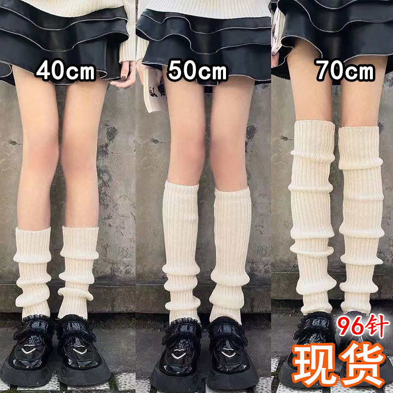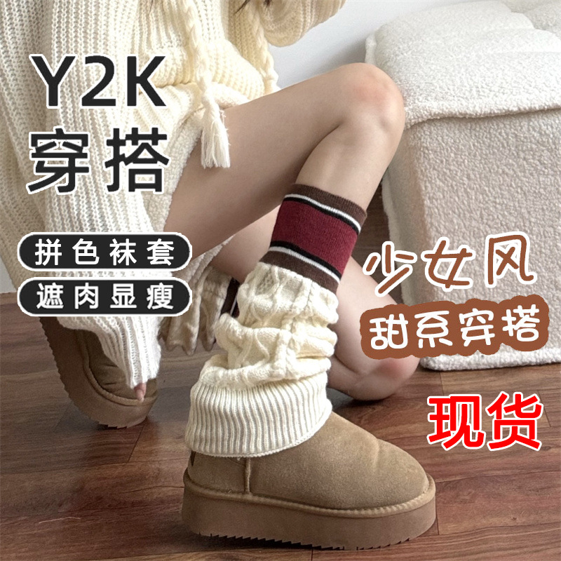 Ins白黒広脚縞靴下カバーy 2k千年ギャル秋冬jk下腿山黒灰保温ラッパ脚カバー