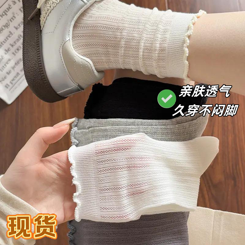 靴下の女性の木の耳元の夏の薄いタイプの中筒の純色の灰色の積み重ねの靴下のレースの通気性の網の目のiuは夏を結びます。