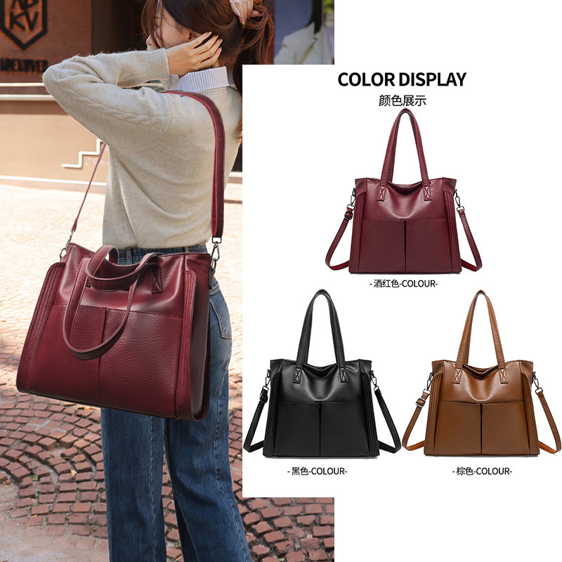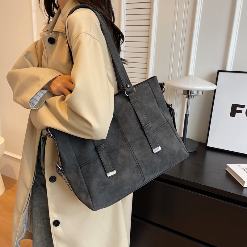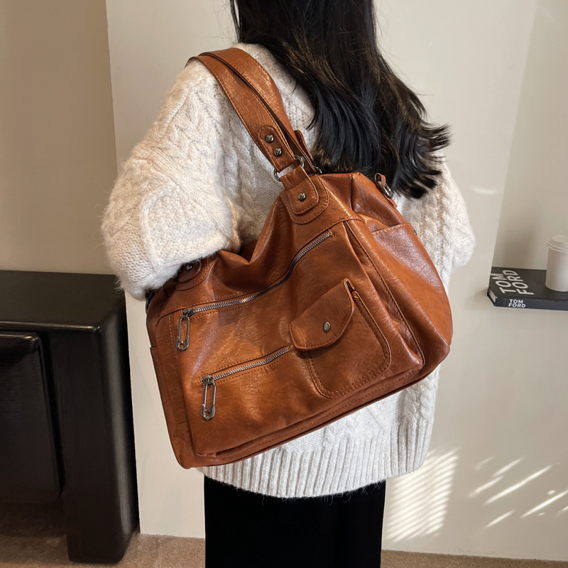 日系秋冬新作カジュアルトートバッグ女性2024新作ソフト皮大容量脇下バッグ通勤ショルダーバッグ