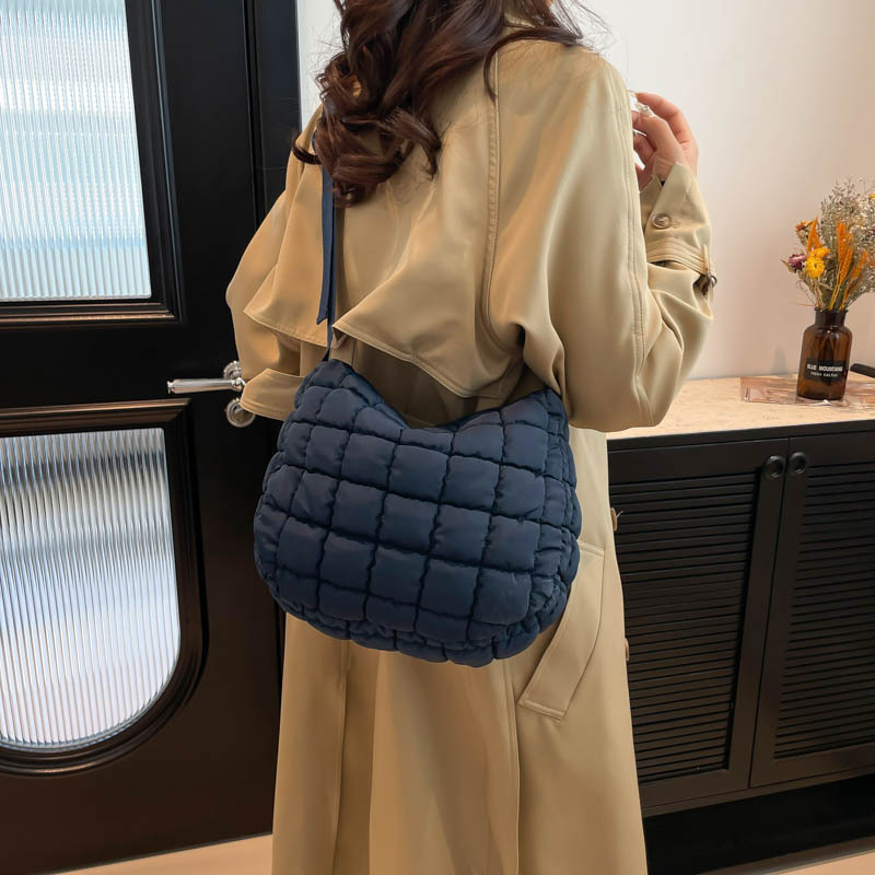 2024新型しわ雲バッグ女性シングル肩ひも調節斜めショルダーバッグファッションダウン綿服腋の下餃子バッグ