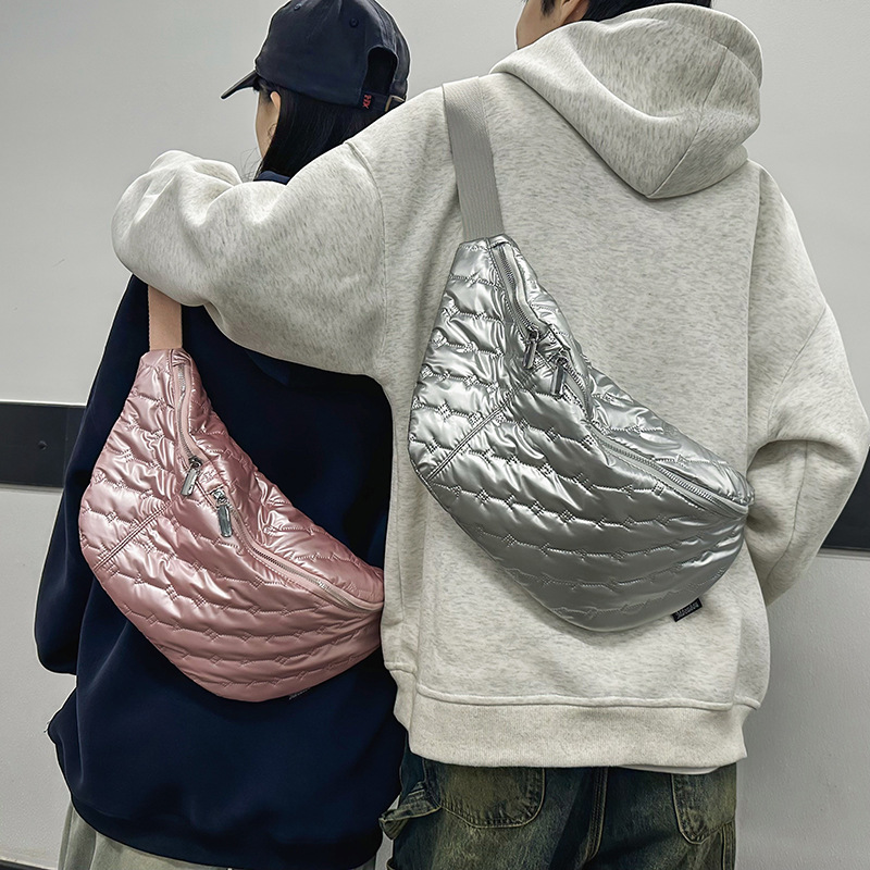 秋冬用クロスボーダーダブルポケットパール光沢コットン生地男女兼用チェストバッグ斜め掛けバッグおしゃれシンプル斜め掛けカップルバッグ