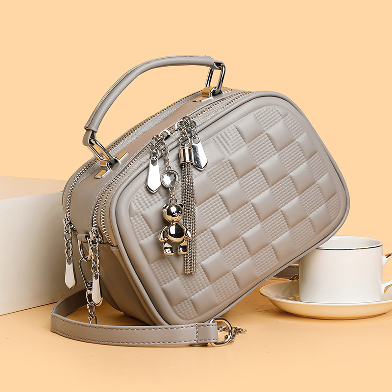 純色シンプルファッション菱格紋2025カジュアルレトロ夏の新型大容量手提げ小方斜め掛け女性バッグ